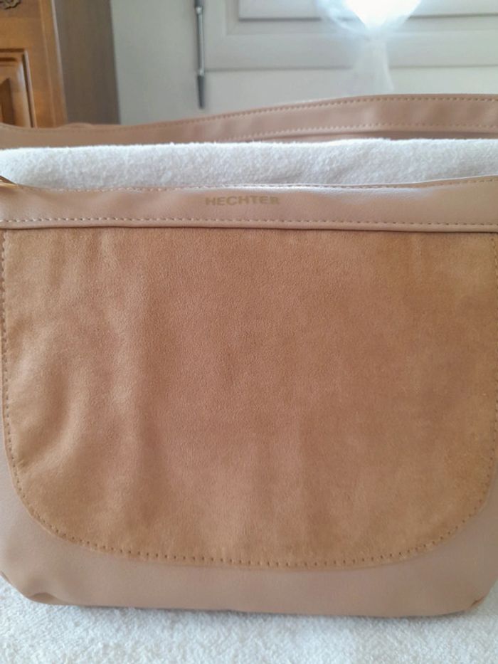 Superbe sac à main avec bandoulière bicolore marron