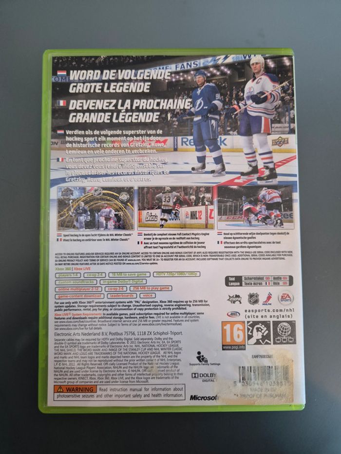 NHL 12 XBOX 360. Excellent état, proche du neuf. -20% de réduction activée automatiquement à partir de 5 articles. Vendu comme sur les photos. Envoi sous 24h sauf les dimanches et jours fériés si achat réalisé avant 20h. (Mondial Relay, Bpost) Pour les envois Homerr et UPS, envoi sous 48h du lundi au vendredi.