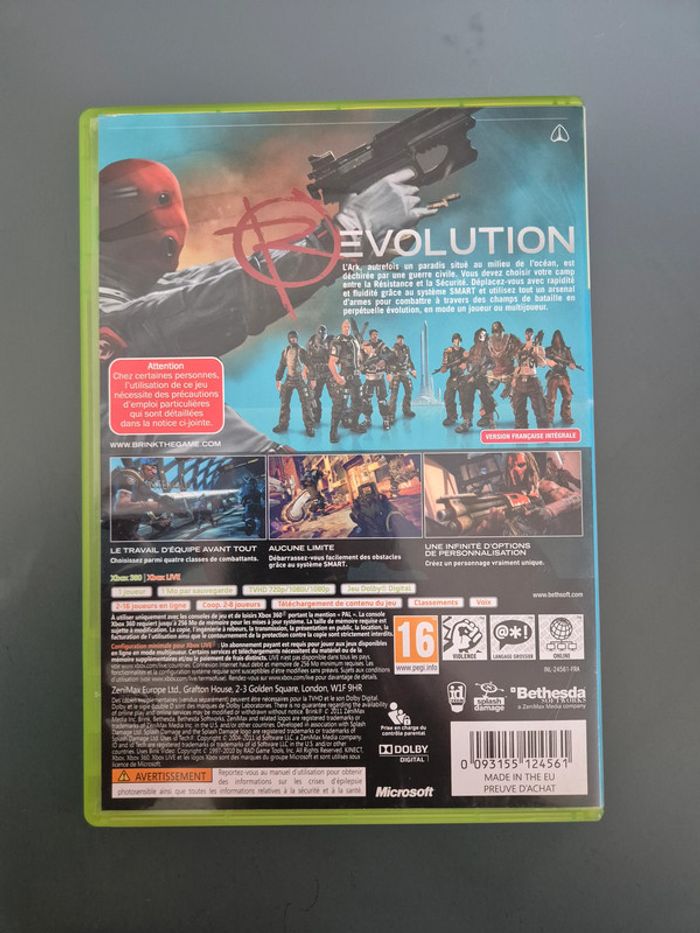 Brink XBOX 360. Bon état général, petites griffes d'utilisations. -20% de réduction activée automatiquement à partir de 5 articles. Vendu comme sur les photos. Envoi sous 24h sauf les dimanches et jours fériés si achat réalisé avant 20h. (Mondial Relay, Bpost) Pour les envois Homerr et UPS, envoi sous 48h du lundi au vendredi.