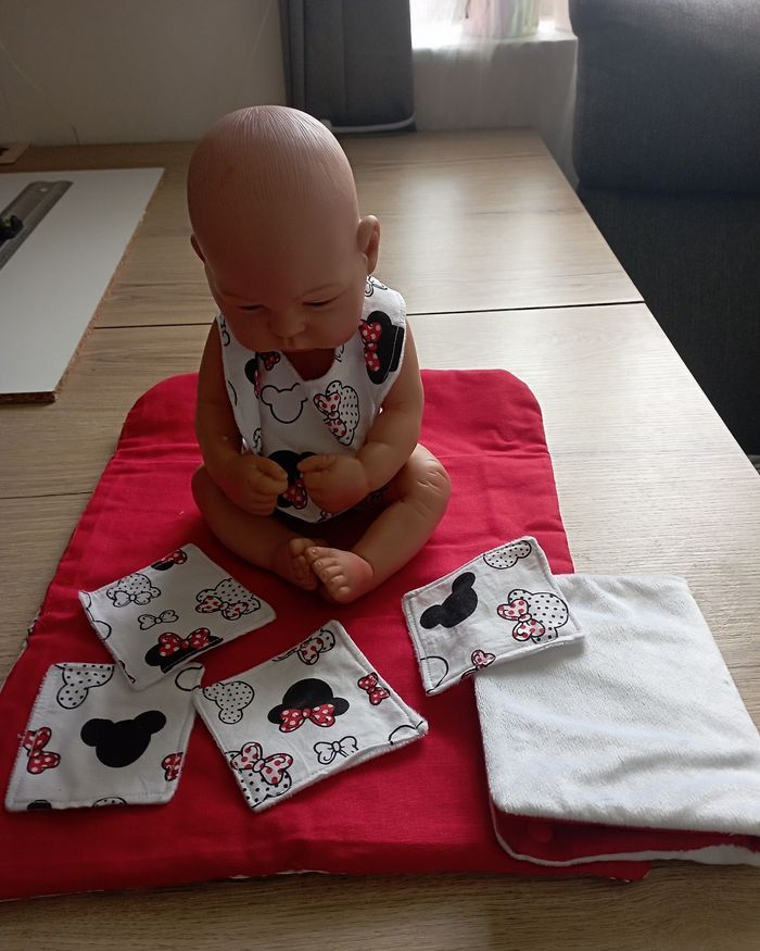 Kit poupée 36 a 40 cm tapis a langer 1 couche 1 bavoirs 4 lingettes