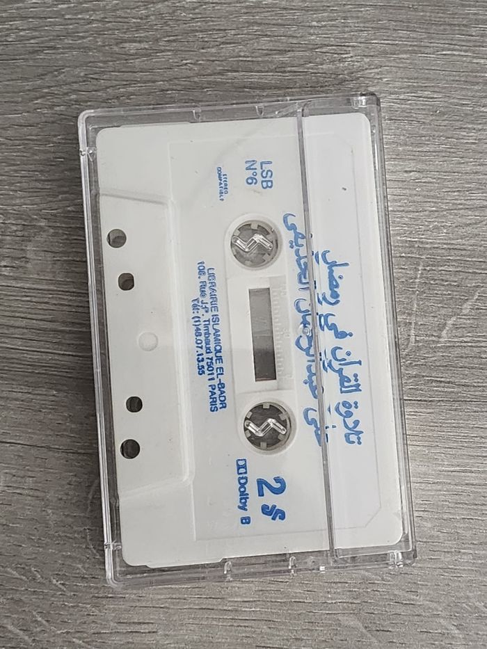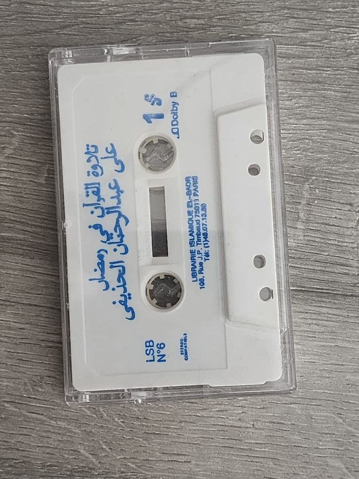 Cassette audio — Tilâwat al-Qur’ân (Cheikh Ali Abdelkafi) — Librairie Islamique El-Badr Face A : Tilâwat al-Qur’ân fî Ramadân Face B : Tilâwat al-Qur’ân (suite) Éditeur : Librairie Islamique El-Badr, Paris (imprimé sur la cassette), réf. LSB n°6, Dolby B Livraison dans toute la France. D'autres produits disponibles sur la page vendeur.