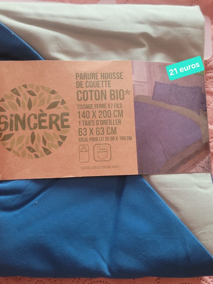 Parure housse de couette 140/200 avec une taie d'oreiller coton bio de marque sincère idéal pour lit de 90/190