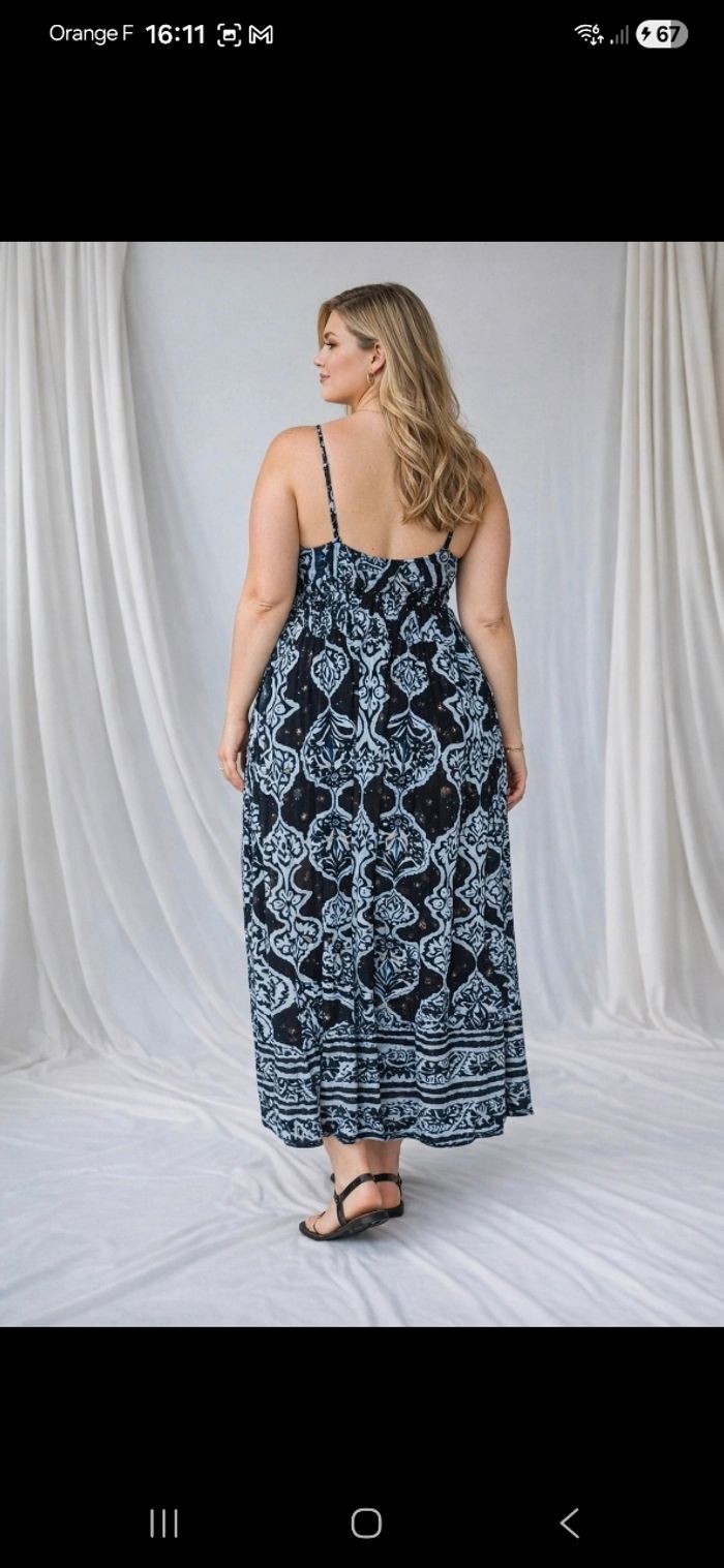 Va du 34 au 50 Robe Magique à Bretelles - Élégante et .égère MetteZ en valeur votre silhouette avec cette magnifique robe magique à bretelles fines ! Parfaite pour I'été, les vacances ou une soirée bohème chic. Couleur : Noir avec imprimé blanc Taille : Taille unique - s'adapte à plusieurs morphologies grâce à sa coupe fluide Style: Longue, décolleté en matière extensible et confortable