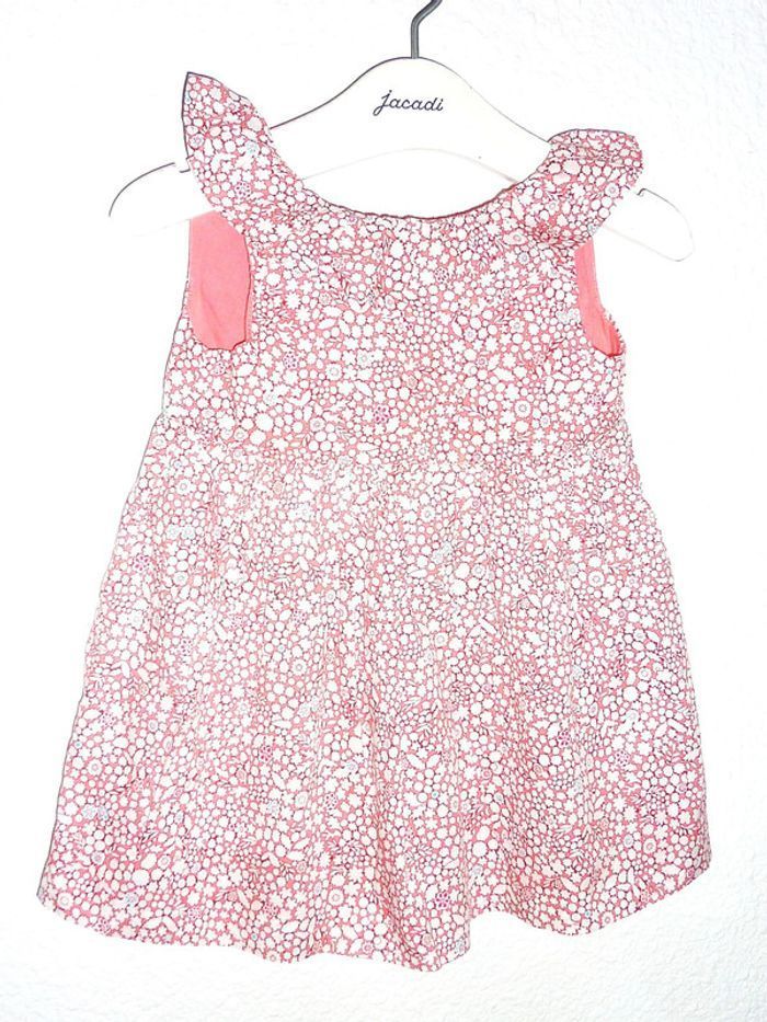 Pour voir mes annonces dans cette taille, tapez: #karinelillefille18mois Robe de marque JACADI en état excellent. Imprimé fleuri blanc sur fond couleur rose. Le petit plus ? Son col collerette.