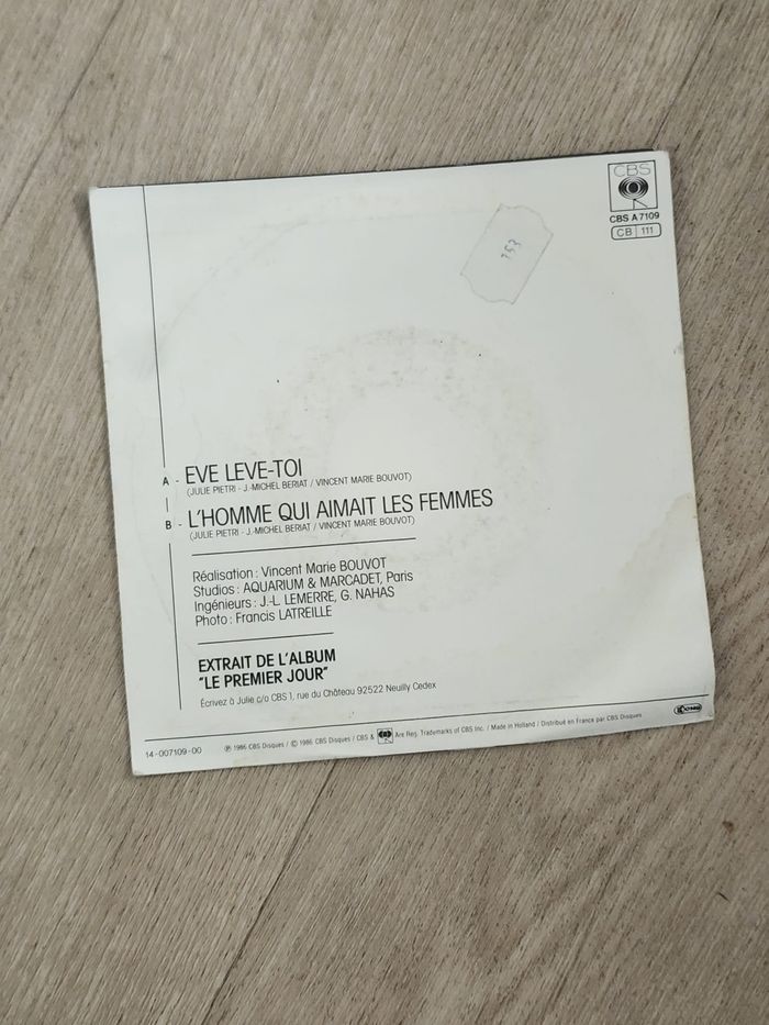 Vinyle - Julie Pietri – Eve Lève-Toi (45T, 1986) Tracklist A : Eve Lève-Toi — 3:50 B : L’homme qui aimait les femmes — 4:10 Vinyle : VG / VG+ Pochette : G+ / VG- Livraison dans toute la France. D'autres produits disponibles sur la page vendeur.