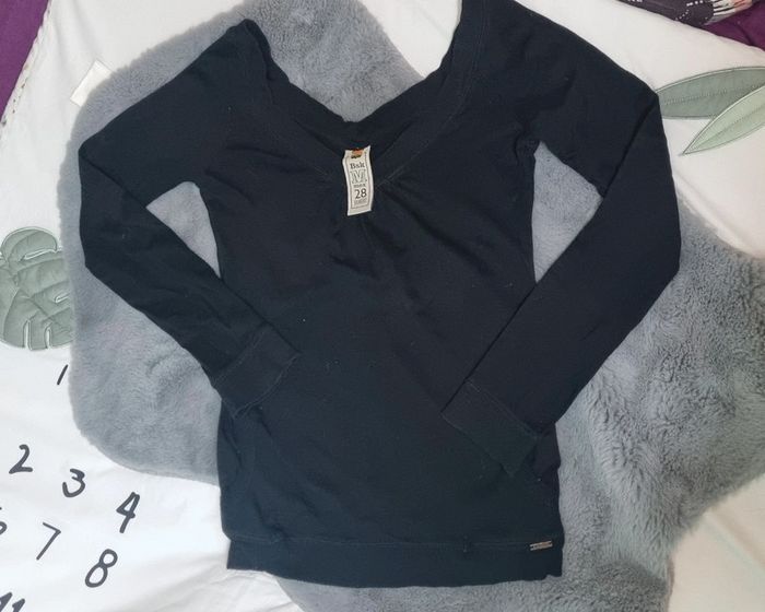Sweat col v noir 100% coton Taille M 28 équivaut à 38 Deux poches à l'avant #bershka #bershkafemme #noir #38femmejuju250486