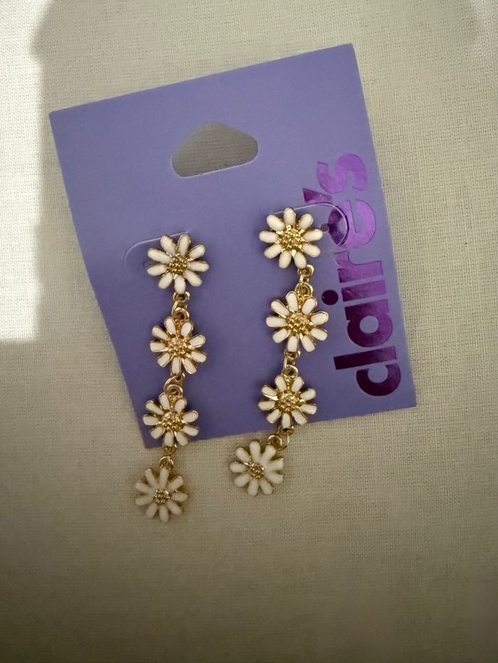 Boucle d’oreille fleur longue Neuf avec étiquette