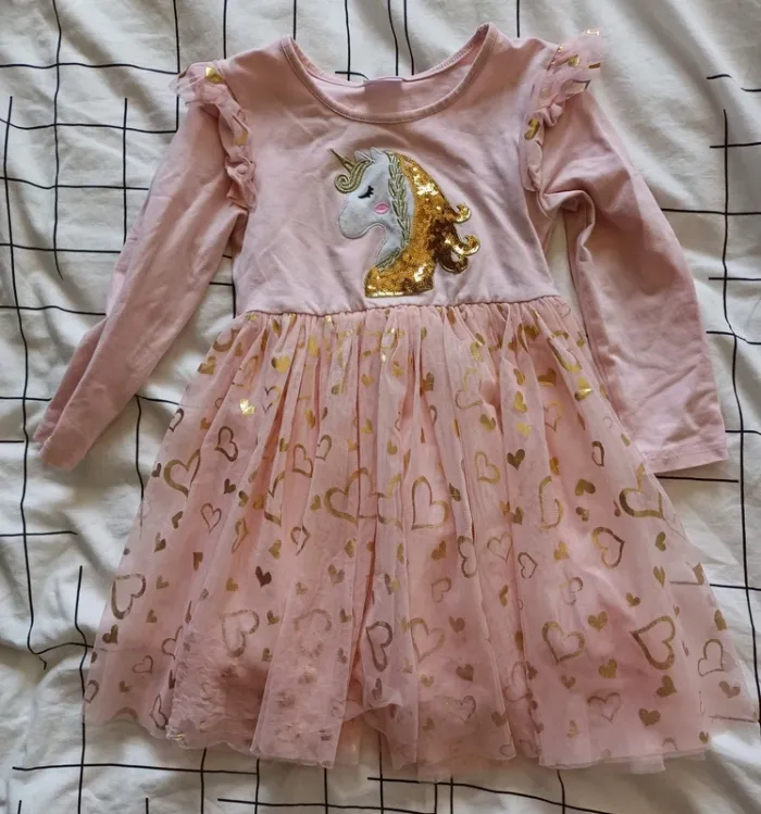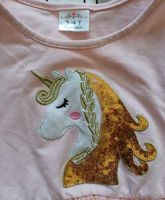 Robe licorne rose à paillettes – Jupon tulle multicolore – 2 ans