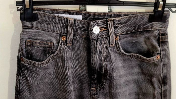 Vends jeans zara, gris ajusté à la taille et pattes large