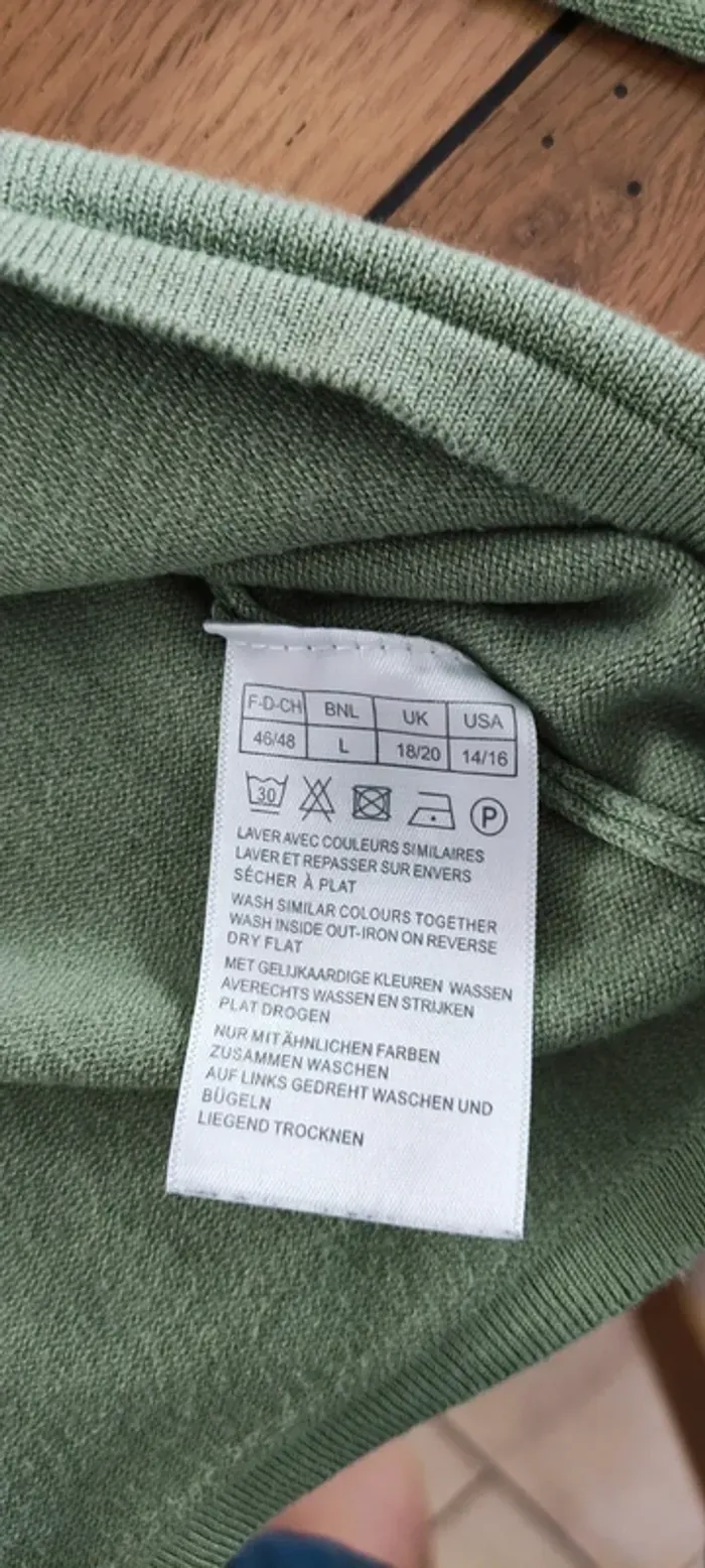 Bon état. Matière : viscose 70%, polyamide 30% Dimension à plat, aisselle à aisselle : 48 cm extensible. Couleur : vert ⚠️ envoi uniquement par Mondial Relay - retour non accepté