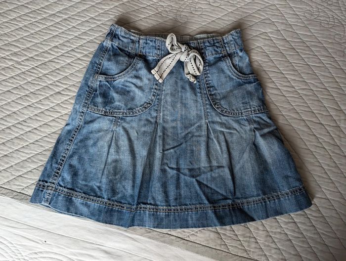 Jupe jean 110cm. Tres bon état. Tache blanchi au derrière, voir photo