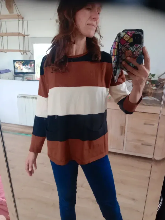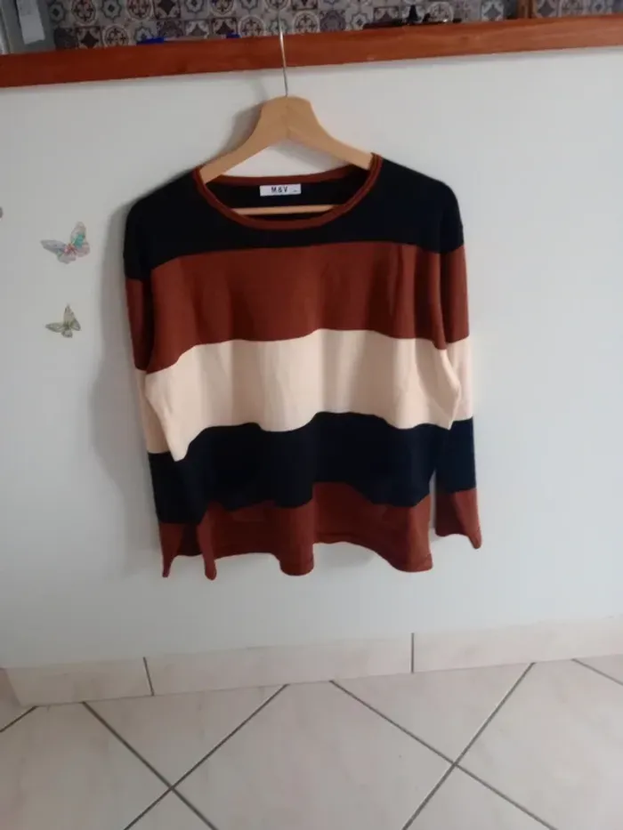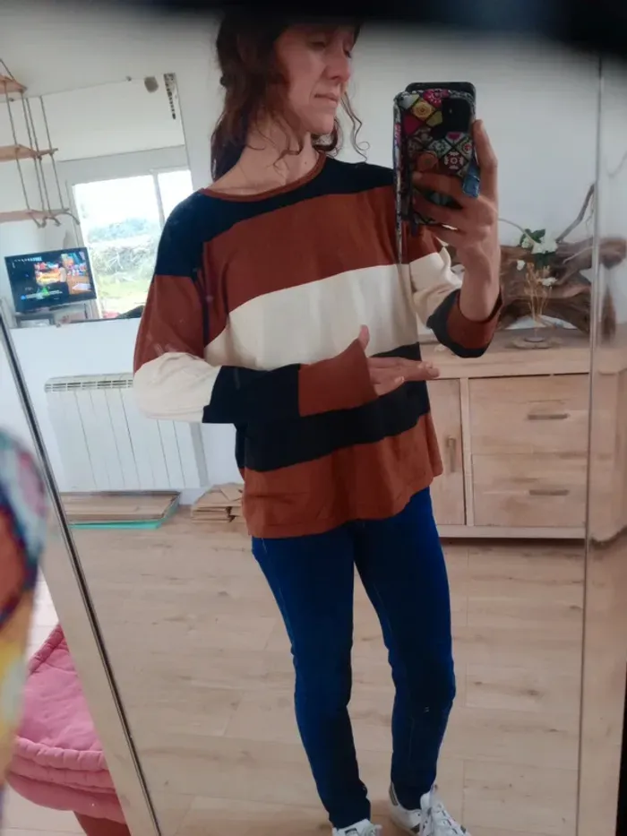 Pull Scottage Rayures Chevron & Laçage - T. 5 / 50 à 54 (Élégant & Tendance)