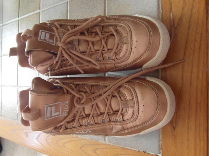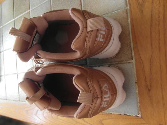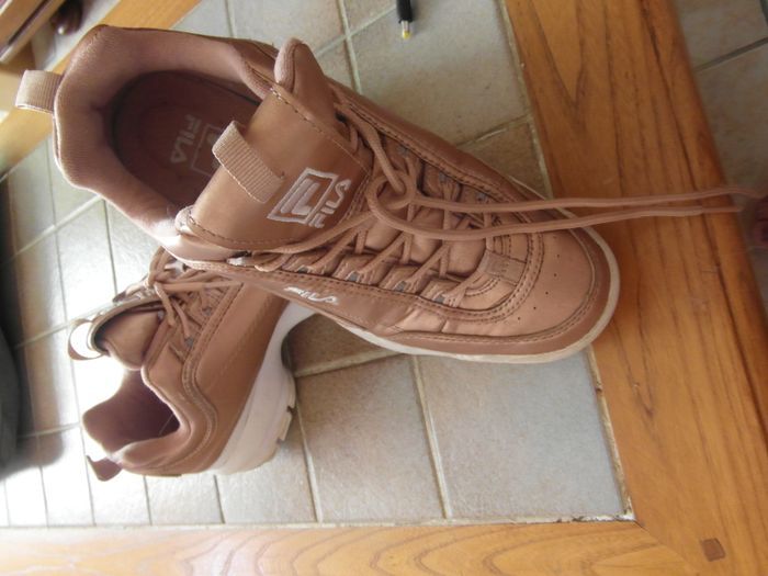 taille 39 - portées mais en très bon état couleur beige rosé marque FILA (valeur neuves 120 euros)