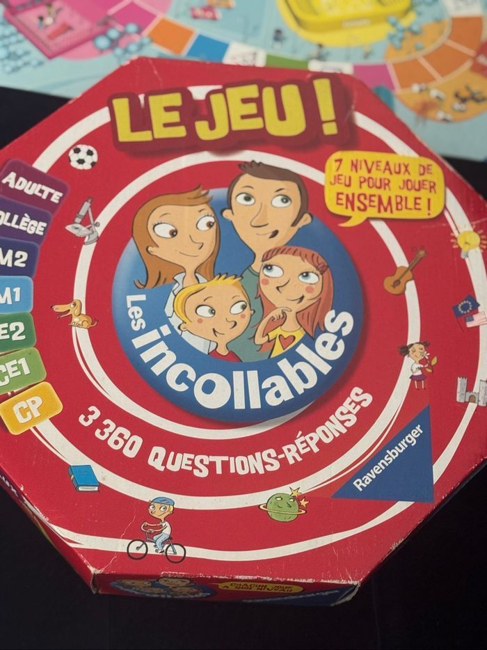 Jeu de société les incollables Cartes recto verso en manque 6 Manque 5 cartes sos, 1 pion et les règles du jeu Ne gêne pas au déroulement du jeu