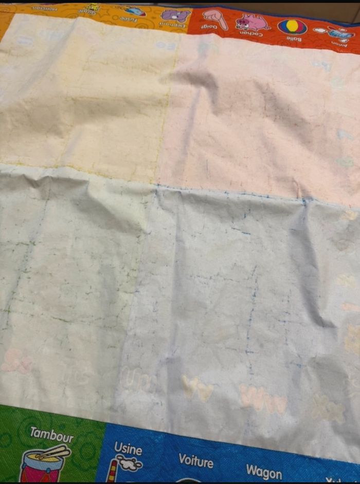 Vend ce tapis pour enfant à partir de 18 mois Vendu avec 2 stylos - 2 tailles différentes pour une prise en main différente Utilisé souvent, présente des traces mais peut trouver une seconde vie.
