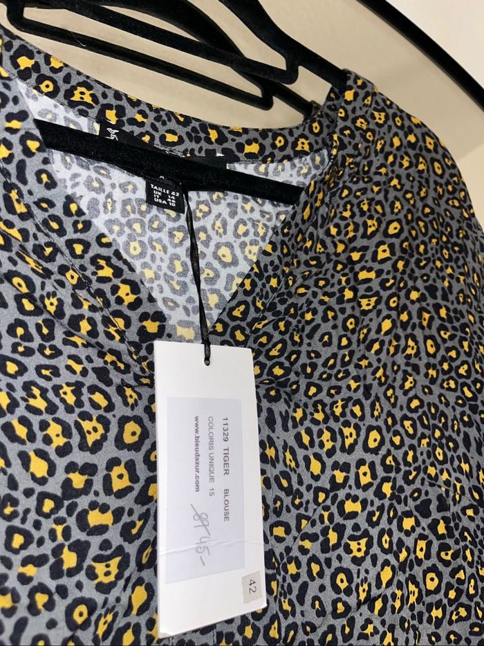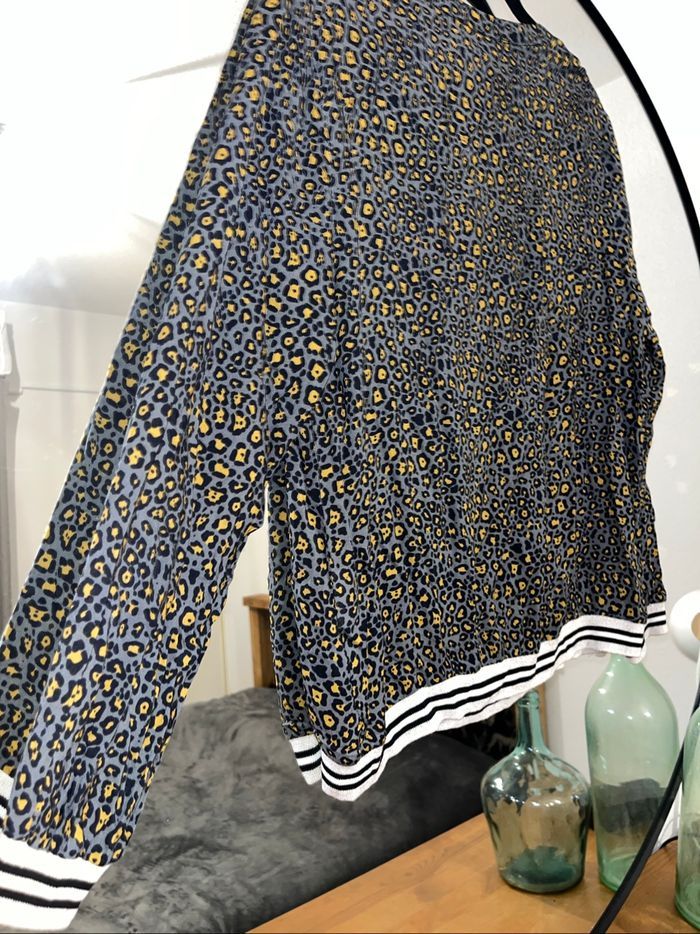 Blouse manches longues, imprimé léopard -Couleur gris / taches léopard moutarde NEUF AVEC ÉTIQUETTE