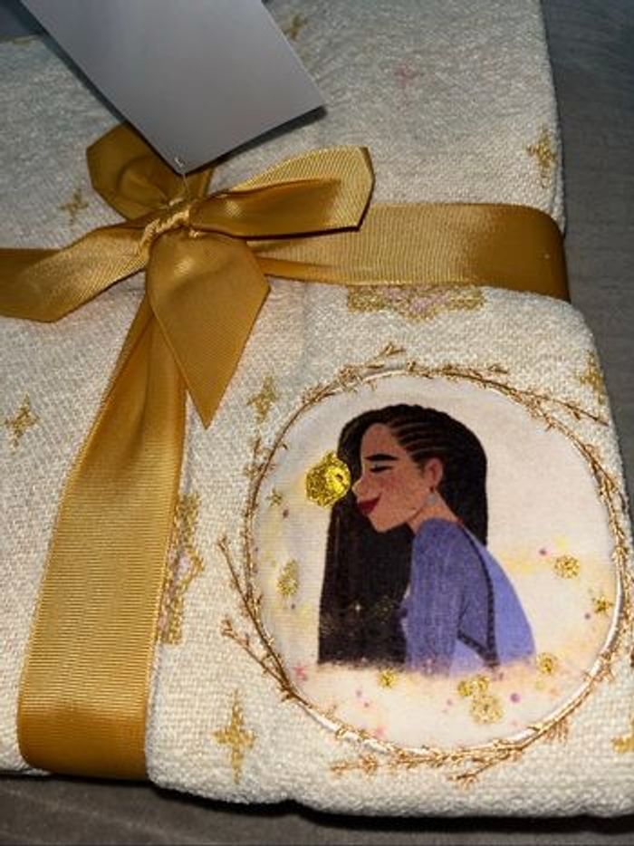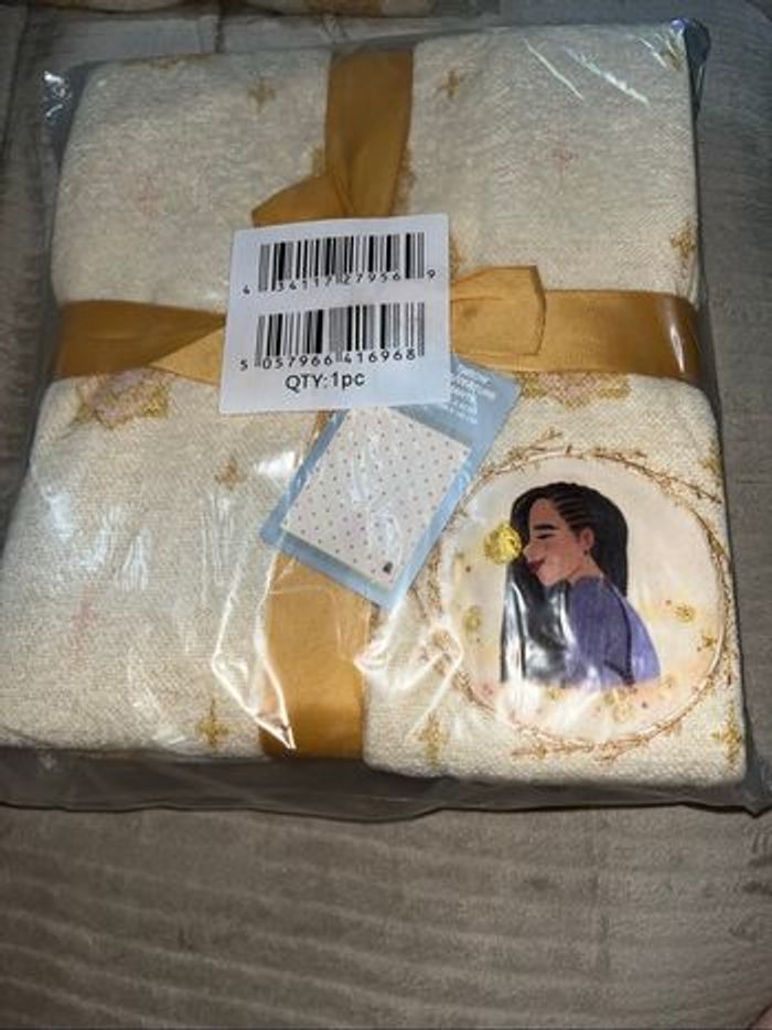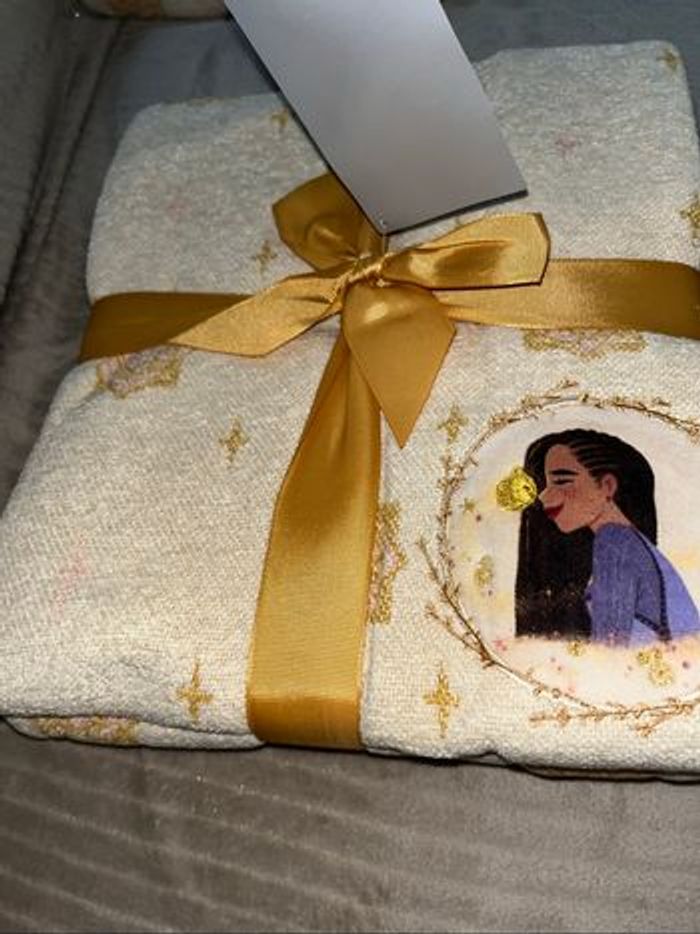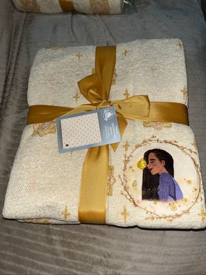 Plaid Tissu chenille tissé Appliqué avec motif Asha dans le coin Appliqué et étoile dorée brodée sur la bordure Motif géométrique intégral Bordure à franges Tout doux Produit inspiré de Wish : Asha et la Bonne étoile (2023) Produit créé pour Disney Store Produit de la collection Wish, des studios d'animation Disney H 127 x | 150 cm environ 100% polyester, à l'exception des garnitures