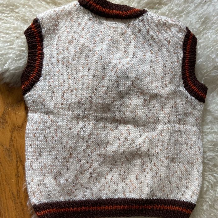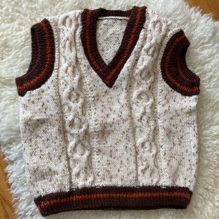 Pull sans manches en laine beige, marron orange Fait main avec une laine de qualité ne pique pas Taille quatre ans