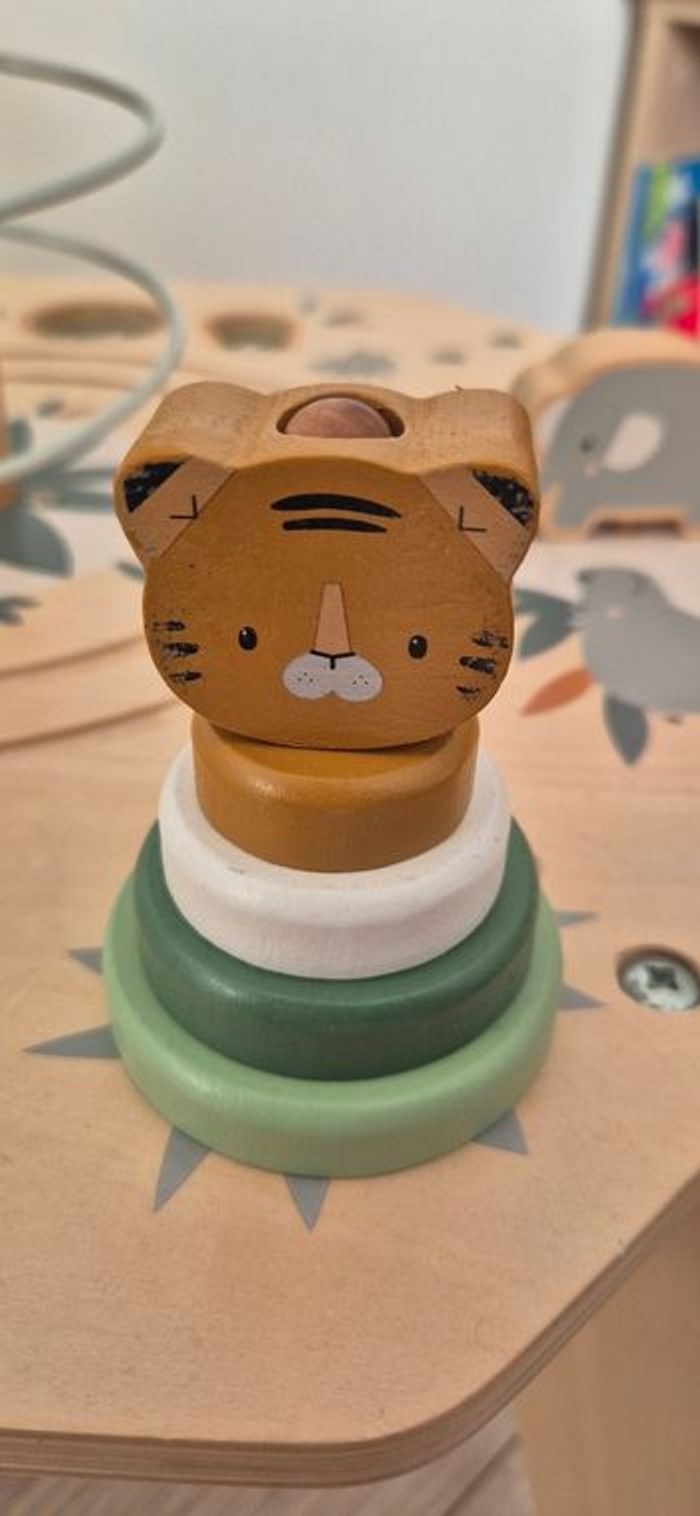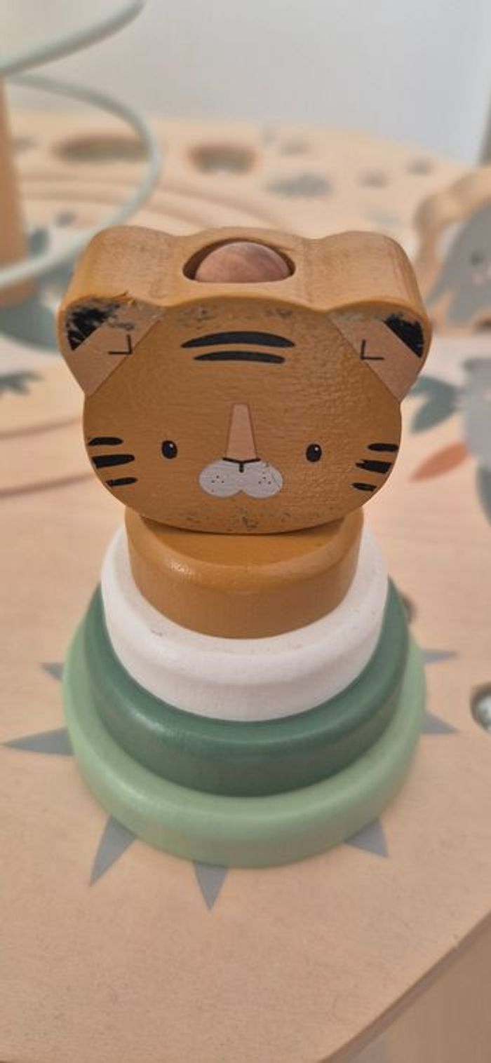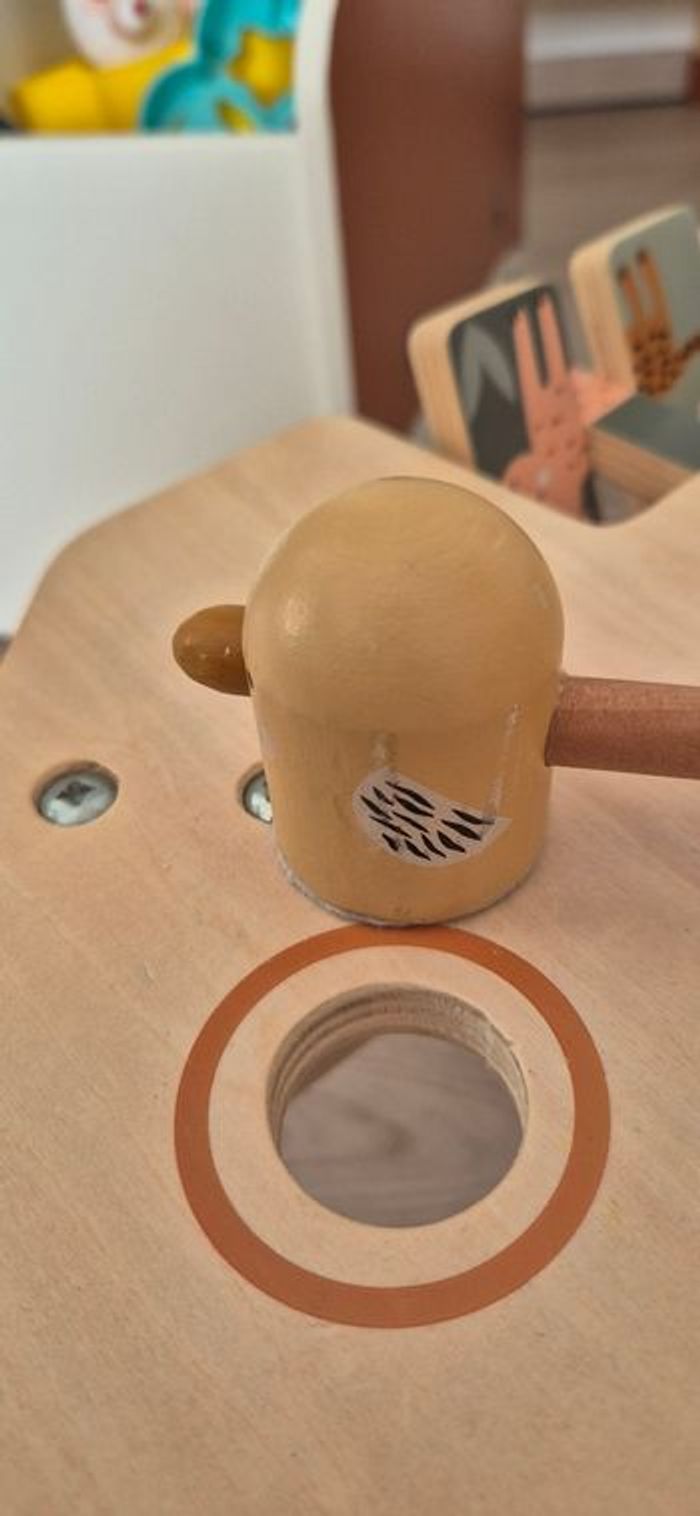 Table multi-activités vertbaudet Hanoï en bois, complet quelques traces d'usures sur la structure et sur les éléments.