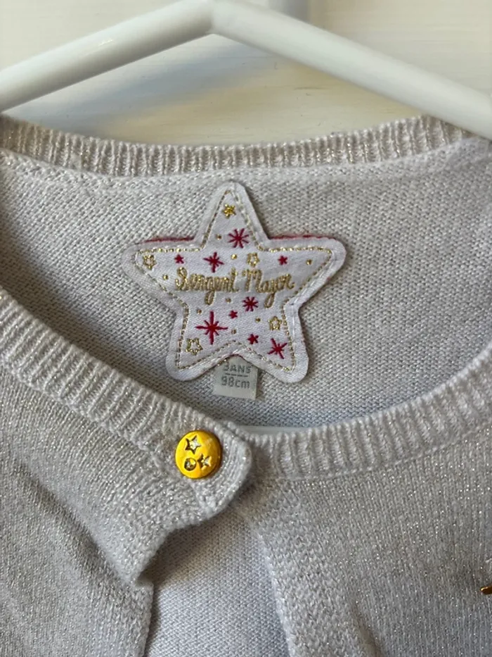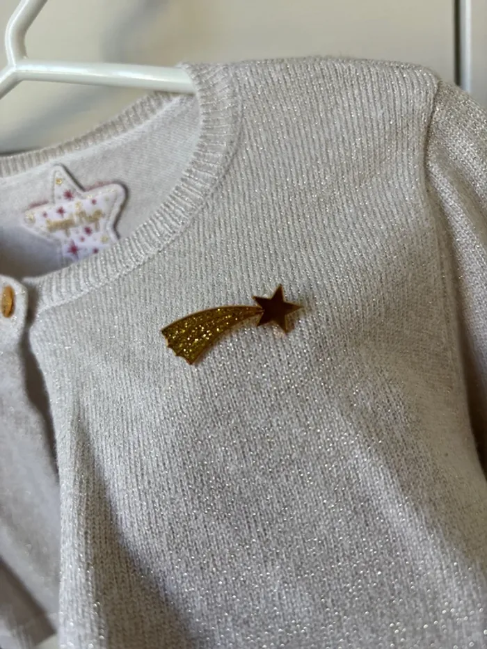Gilet beige brillant avec pins étoile filante et boutons aux manches 3 ans