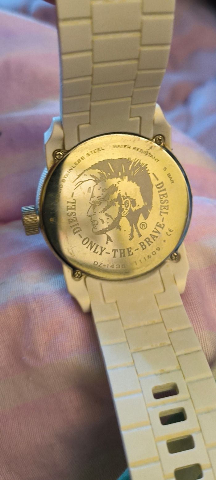 Montre diesel homme blanche. Sera lavée pour la vente. Petites rayures sur le cadran, peu visibles et ne gênent en rien.