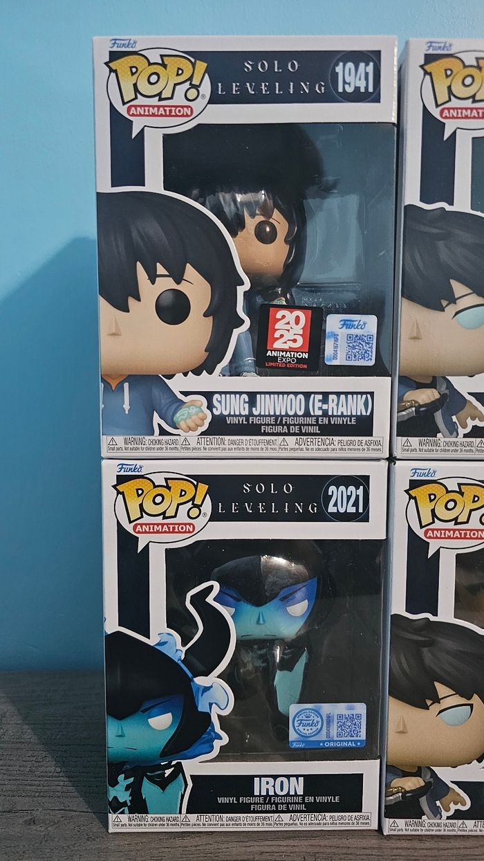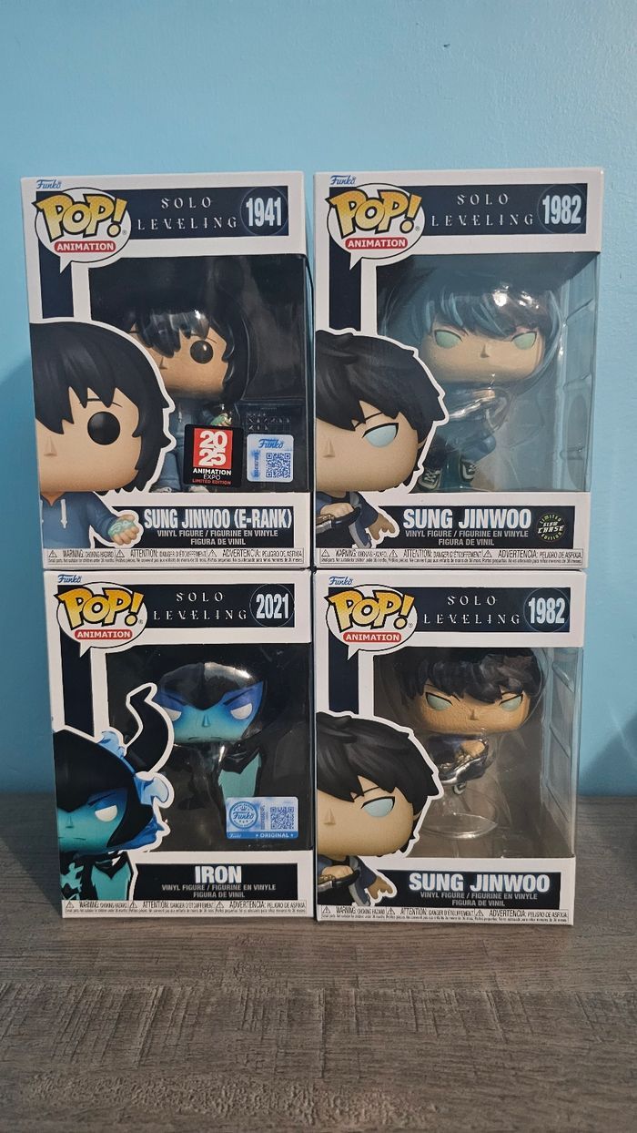 Pop Solo Leveling Jinwoo (e-rank) 1941 exclusive + anime expo 100€ Jinwoo 1982 vendu Jinwoo 1982 chase 40€ Iron 2021 exclusive 60€ Beru 2022 exclusive + GITD vendu Réduction sur lot Envoi protégé (papier bulle)+ vidéo preuve mais privilegie main propre Toulouse et les alentours Vends aussi protection souple à 2€/unité et rigide à 10€/unité Proposez prix par message sans abuser. Réponse rapide par message Merci