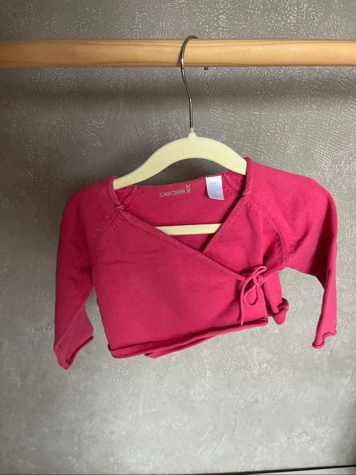 Gilet en maille rose poudré – Kiabi (1 mois)