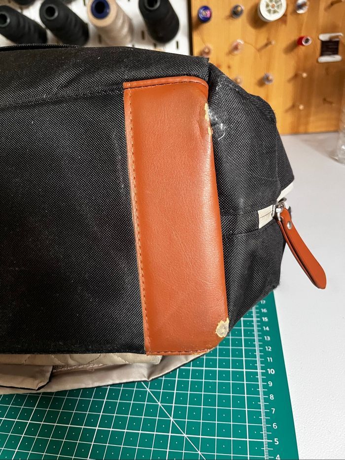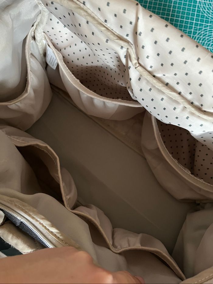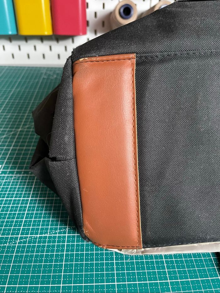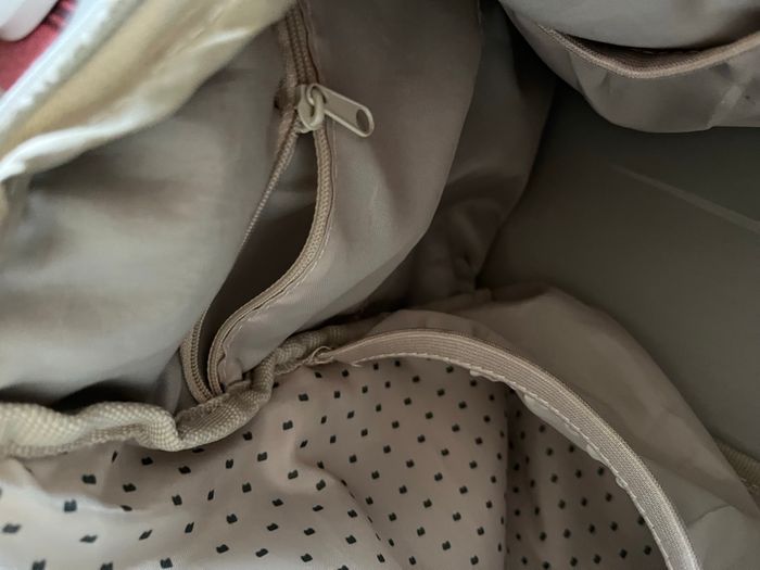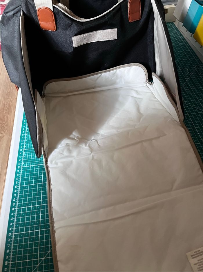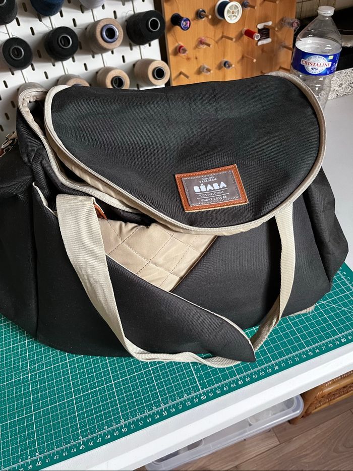 Avec multiples poches intérieures Une petite poche pour la tétine et une isotherme sur le côté. Quelques traces d usure sur le cuir sous le sac (cf photo) Tapis de change intégré et qui se déplie (fixé au sac par des scratchs)