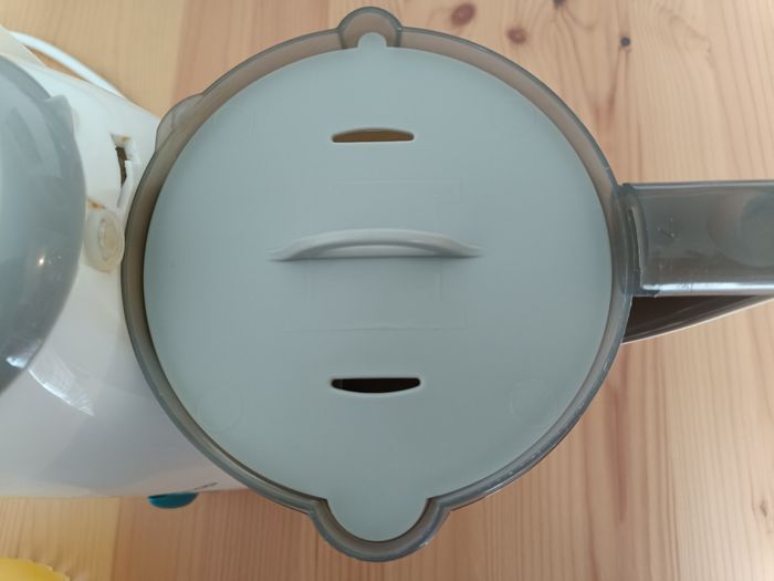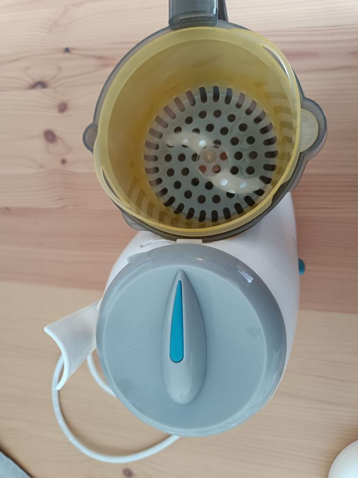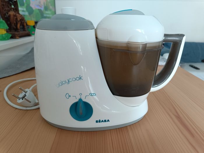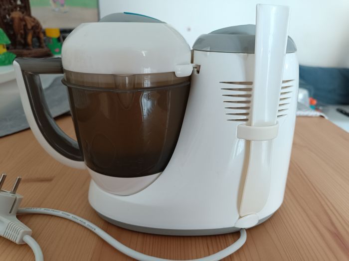 Beaucoup utilisé mais encore en bon état et fonctionne très bien. Comme on peut voir sur les photos, le panier cuisson a pris la couleur des légumes ( surtout celui de la 🥕) L'endroit où l'on met l'eau pour cuire à des tâches de calcaire, j'ai nettoyé mais cela ne part pas.