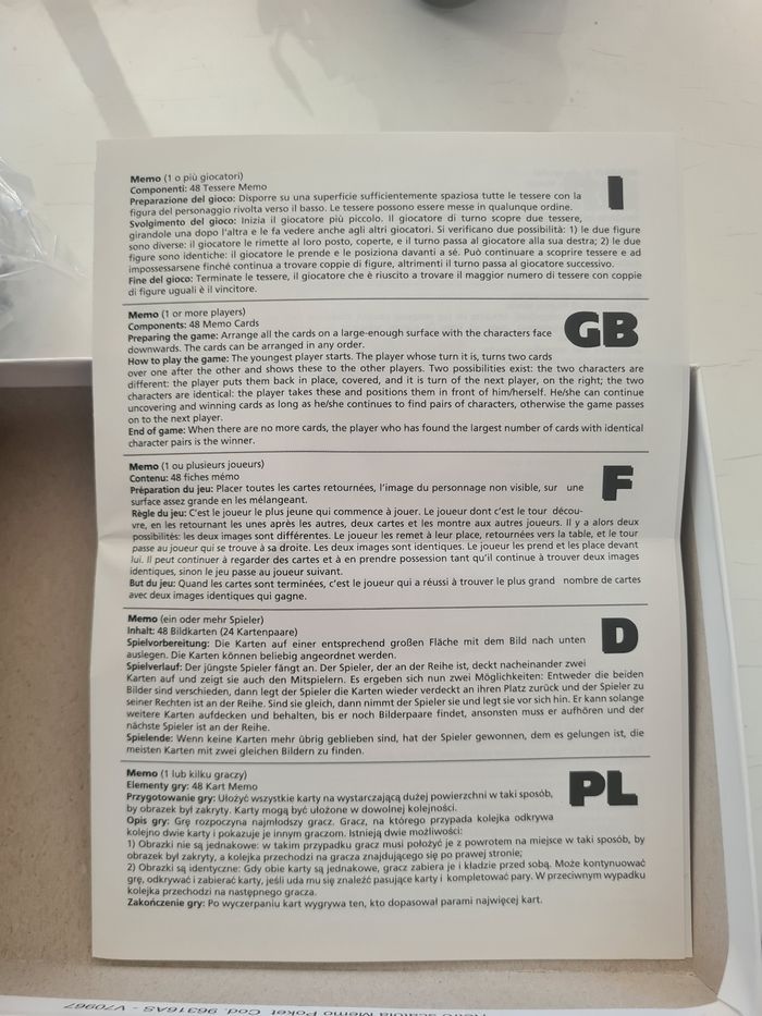 Jeux de memo 24 paires neuf jamais ouvert clementoni
