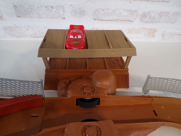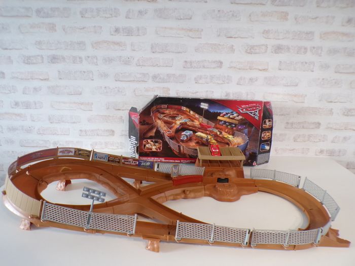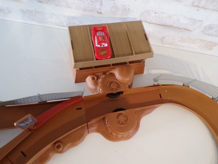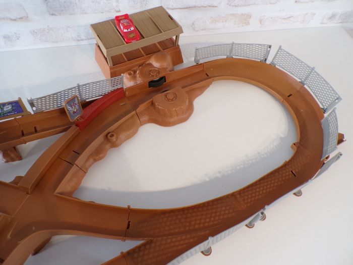 Circuit Cars - Thunder Hollow - Flash Mc Queen - Disney, en bon état. Le circuit est compatible avec les autres modèles. Un petit piton fut cassé. Vendu avec sa boite d'origine en l'état. Tout fonctionne parfaitement.