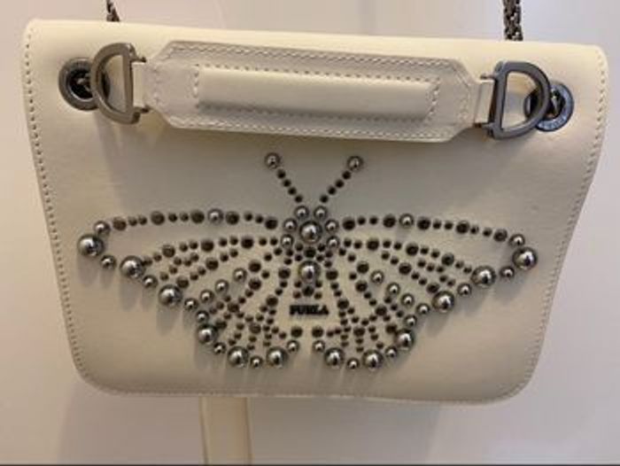 ✅ État et Authenticité • NEUF AVEC ÉTIQUETTE (NWE) : Le sac est absolument neuf, n'a jamais été porté et vient avec son étiquette d'origine. • 100% Authentique FURLA : Pièce iconique de la maison italienne, garantie authentique (indiquer si vous avez le dustbag ou la carte d'authenticité, par exemple). • Idéal pour un Cadeau : Parfait pour offrir, il est dans un état impeccable. 👜 Le Modèle Iconique : Furla Metropolis • Design intemporel et chic : Le sac Metropolis est un classique de Furla, reconnaissable à sa silhouette structurée et son fermoir métallique élégant. • Matière de qualité : Cuir de veau lisse. • Couleur : blanc - une teinte polyvalente qui se marie avec tout / une couleur tendance qui fera sensation. • Détails : Bandoulière chaîne/cuir amovible (ou réglable), fermeture par rabat avec fermoir siglé en métal doré/argenté. 📏 Détails Techniques (Très important pour l'acheteur !) • Modèle : • Dimensions approximatives : L 24cm x H 18cm x P 9cm. • Prix en boutique : 420 euros soit une économie de plus de 70%