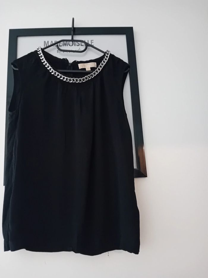 Vends 1 Blouse Marque Michael Kors Trés féminine et chic Tour du coup en chaine argentée 100% Soie Noire Taille S/36 Prix 36 euros