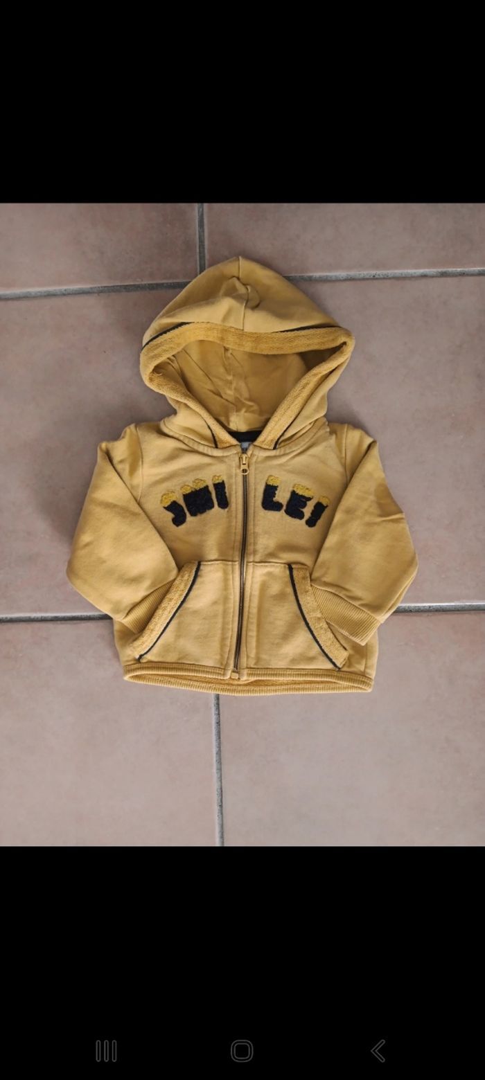 Lot de 4 pulls et 1 veste : - 2 de la marque TAO (rouge et bleu marine) - 1 turquoise (sur la photo fait bleu clair). Marque Tissaia. - 1 veste jaune moutarde TAO. Taille 9 mois / 71 cm. Peu porté, en parfait état.