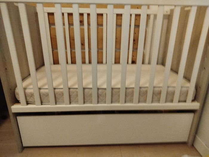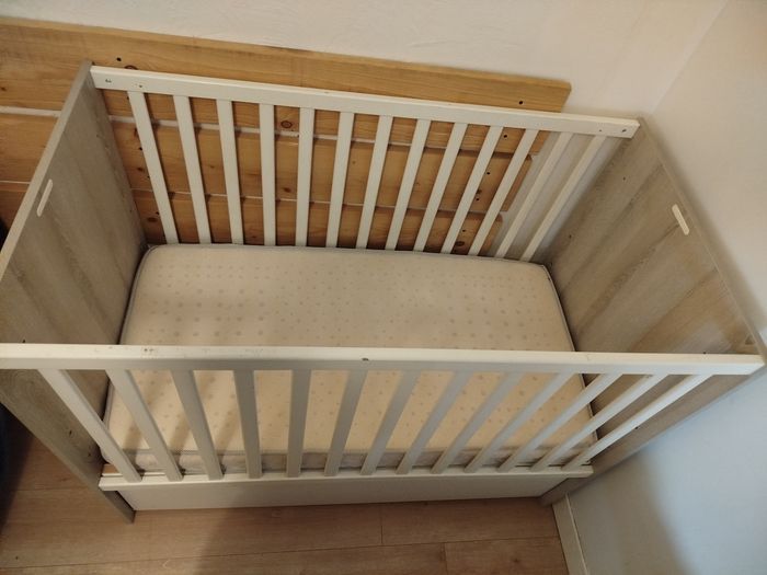 Lit bébé 60x120 + meuble à langer Sauthon + matelas – ensemble chambre bébé
