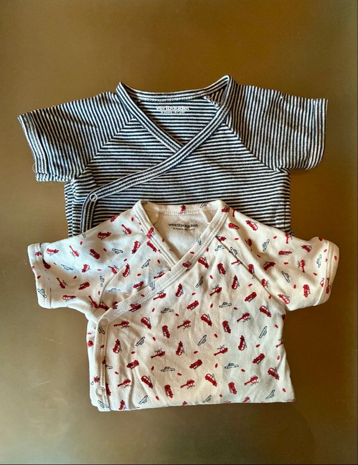 2 bodys en bon état manches courtes ouverture croisée devant vertbaudet