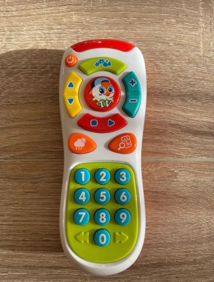 Télécommande comme papa et maman, musique, chiffres... Sons réglable. Matériel : plastique ABS Langue : anglaise Dimensions : 6.5×4х17 cm Age : 6 mois et plus Marque : Huile toys