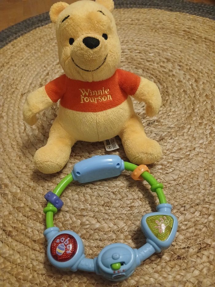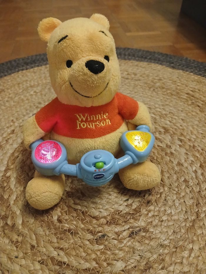 Peluche parlante et musicale Vtech Winnie Mon copain des découvertes Fonctionne avec des piles Les bras se scratch pour placer l'anneau musical autour de winnie