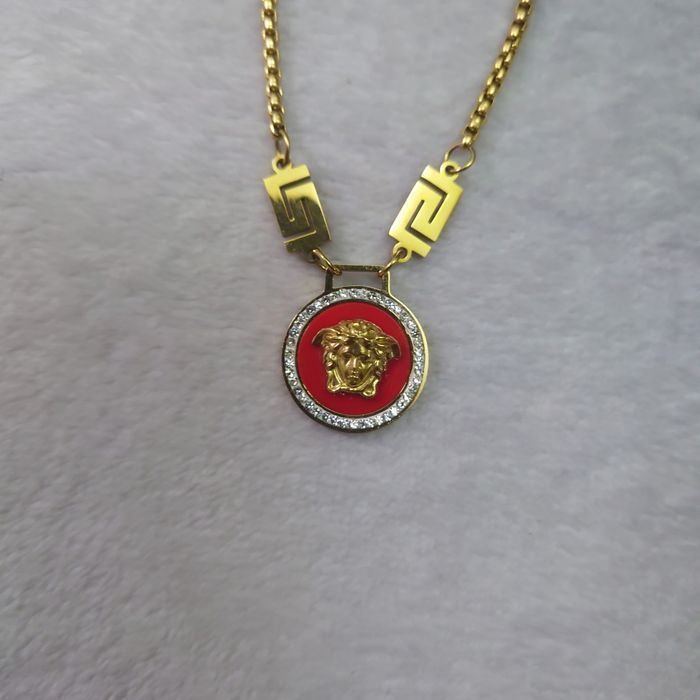 Collier pendentif doré unisexe –  Pendentif rond rouge – Idée cadeau élégante - photo numéro 1
