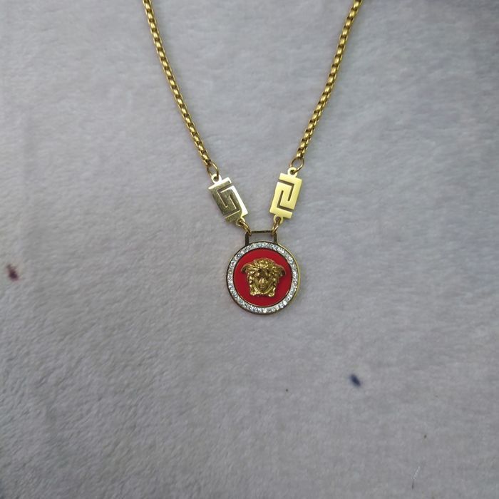 Collier pendentif doré unisexe –  Pendentif rond rouge – Idée cadeau élégante - photo numéro 2