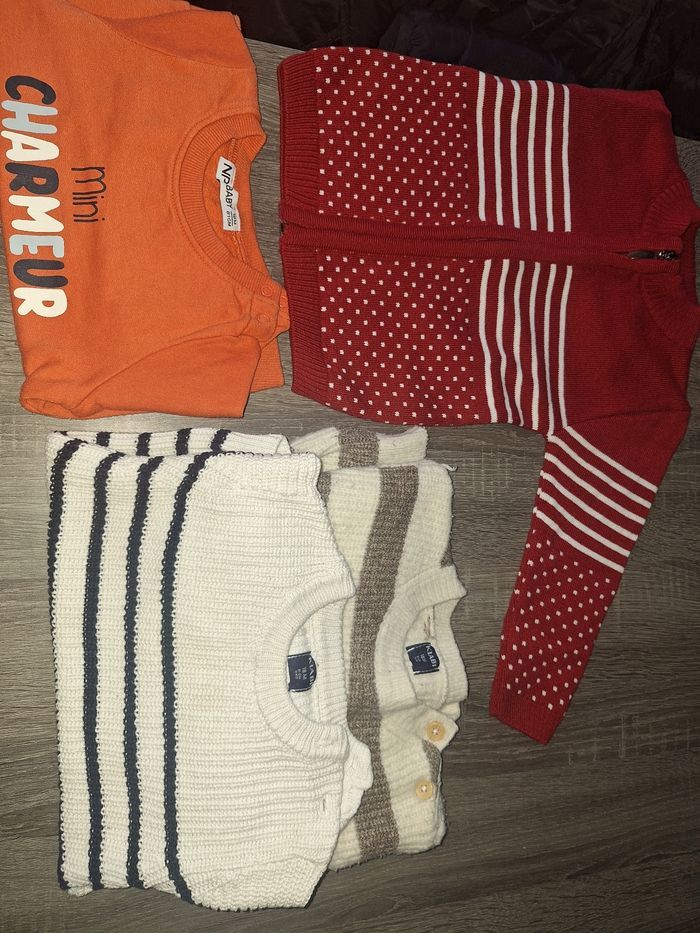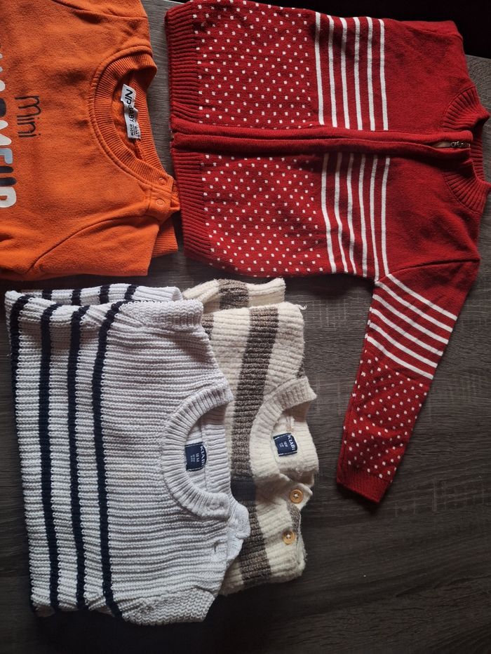1 veste 18 mois jamais porté 2 pull Kiabi 1 pull NPO Baby