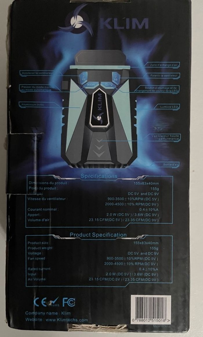 KLIM Cool Refroidisseur PC Portable boite complète