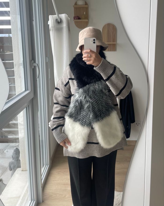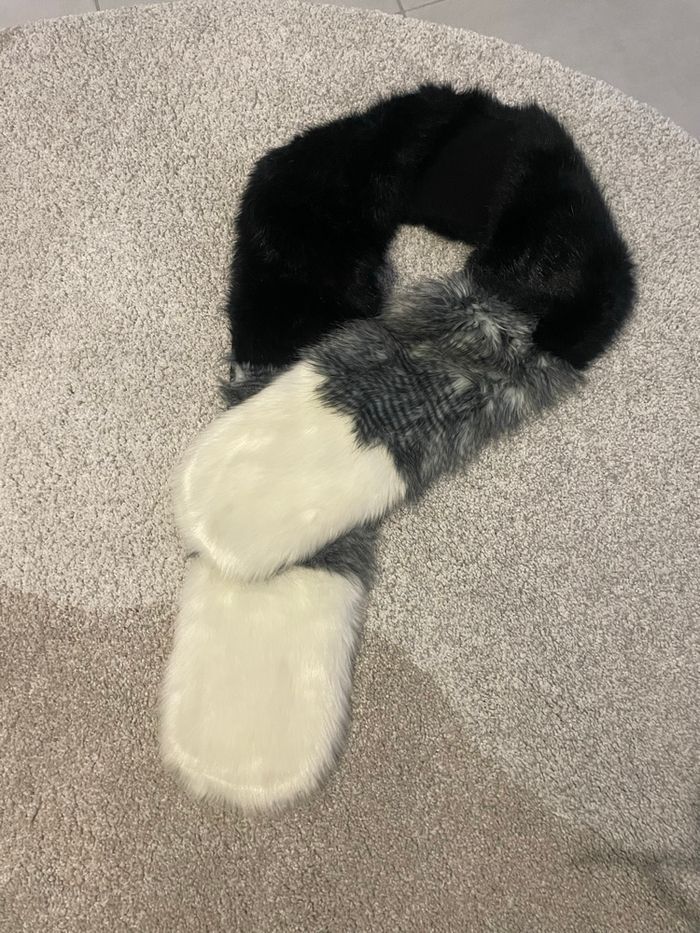 Écharpe douce , qui donne une belle allure lorsqu’elle est posée sur le manteau Couleurs : noir / gris / blanc Très bon état
