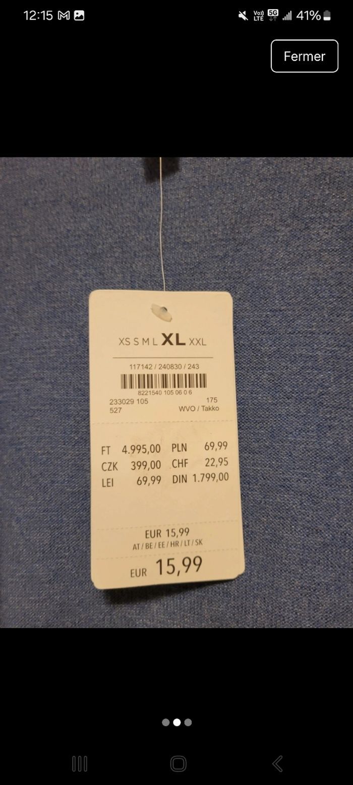 Gilet bleu neuf avec étiquette taille xl matière viscose