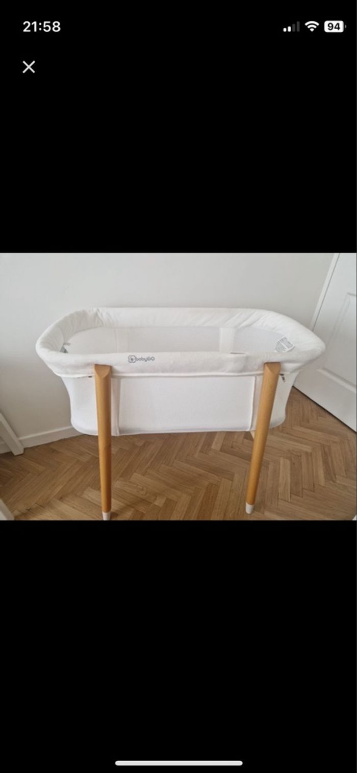 Berceau Babygo en très bon état. Vendu avec une arche de jeux amovible (deux petites peluches sont suspendues mais peuvent être retirées et remplacées) Dimensions du berceau : 89x45x72 Surface de couchage : 82x49