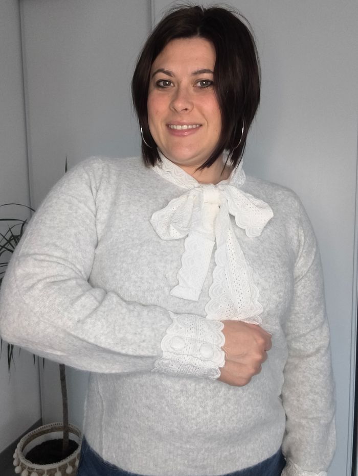 Nouvelle collection 🎉 Pull gris avec poignets et col dentelle Taille unique 36-42