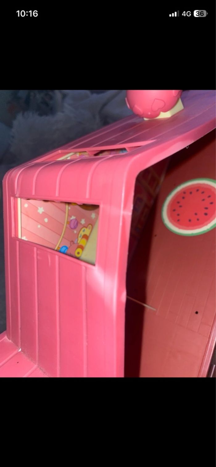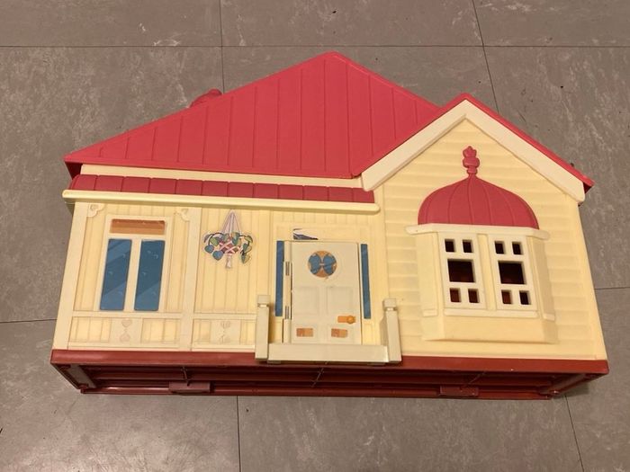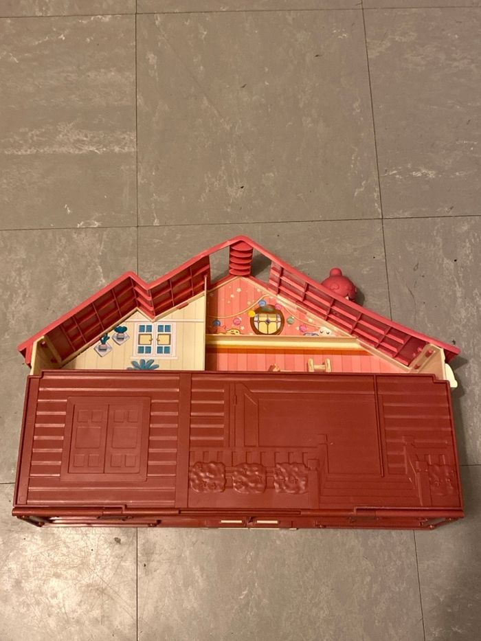 En bon état, défaut de peinture visible sur le toit Vous achetez ce que vous voyez. La maison se referme façon coffre pour faciliter le rangement à l’intérieur. A partir de 3 ans