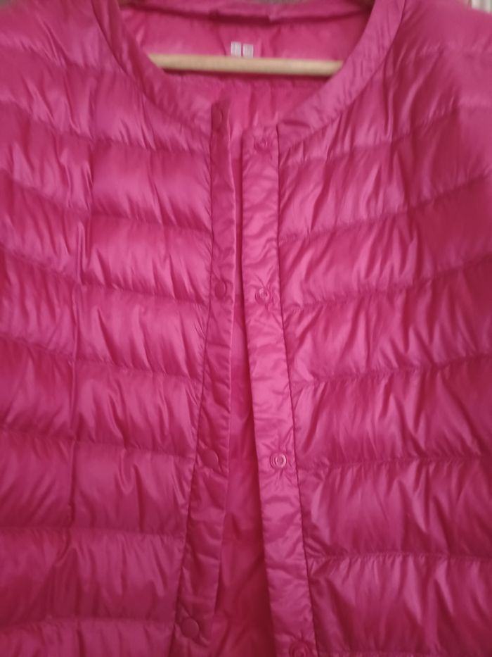 Doudoune femme rose Uniqlo, 2 poches intérieures et 2 poches extérieures. Fermeture par boutons pressions, PAS de fermeture éclair. Petit XL
