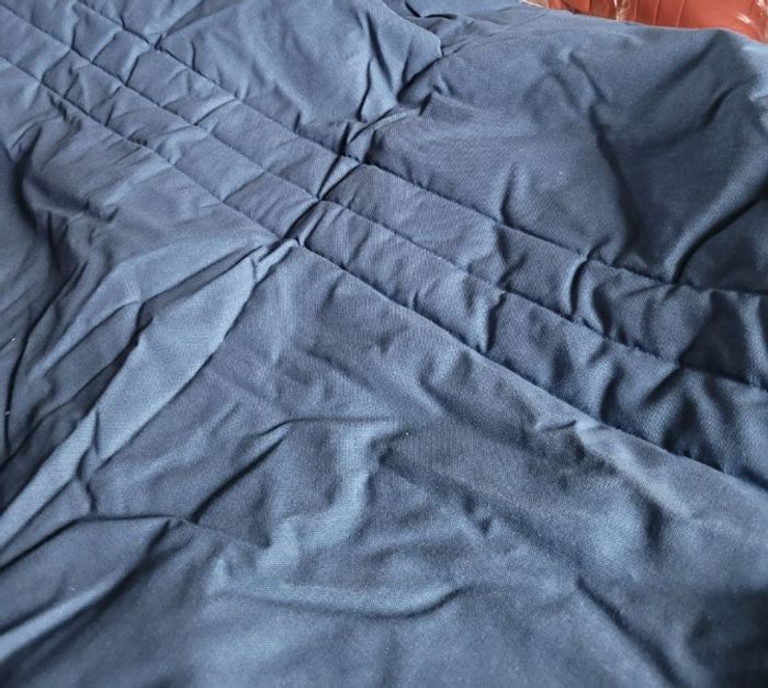 Housse BZ Becquet, 140x190, bleu, entièrement matelassé et zip sur les côtés , bleu, neuve. Description internet Housses intégrales clic-clac et BZ en bâchette coton Entièrement zippées sur les côtés. Matelassage 100% polyester (150 g/m2). Piquage placé, finition gansée BZ longueur 120 à 140 x largeur 190 cm.