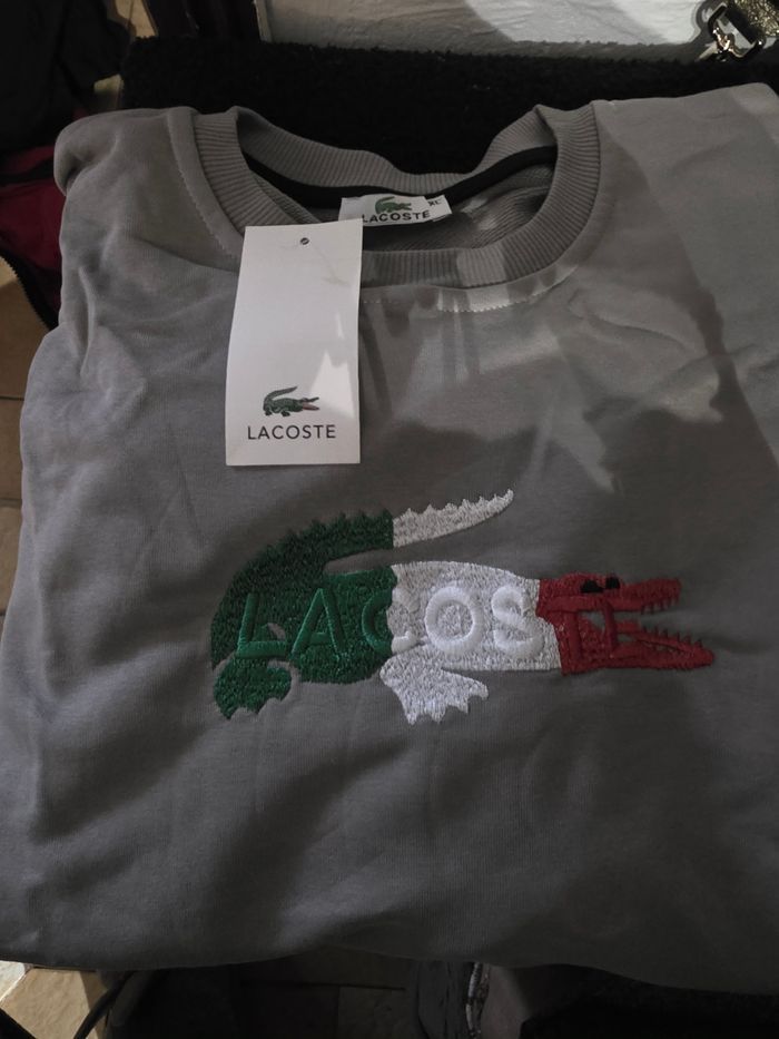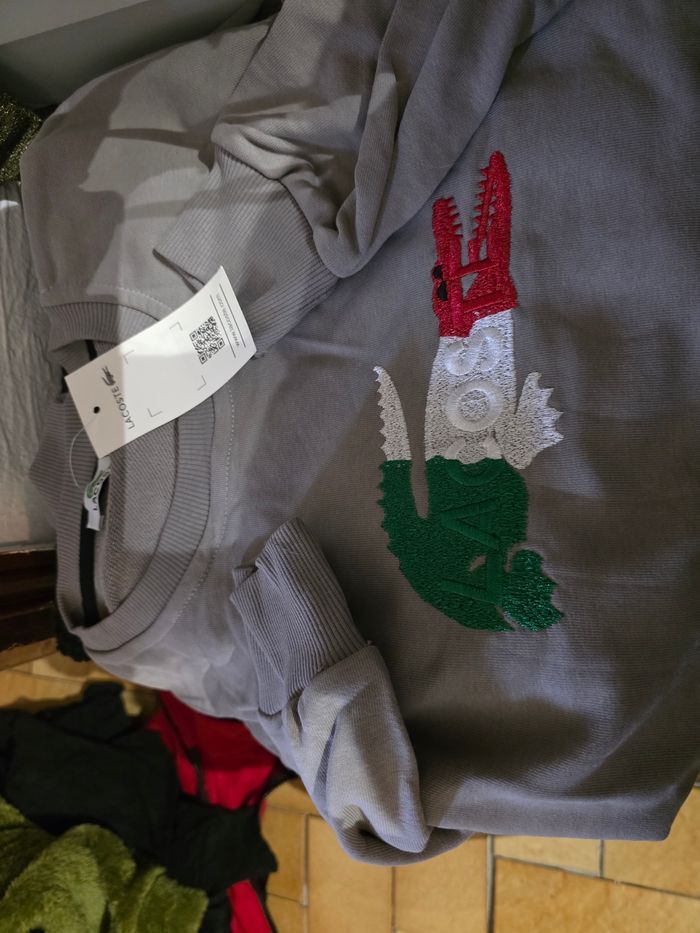 Sweat mixte gris brodé lacoste très bonne qualité